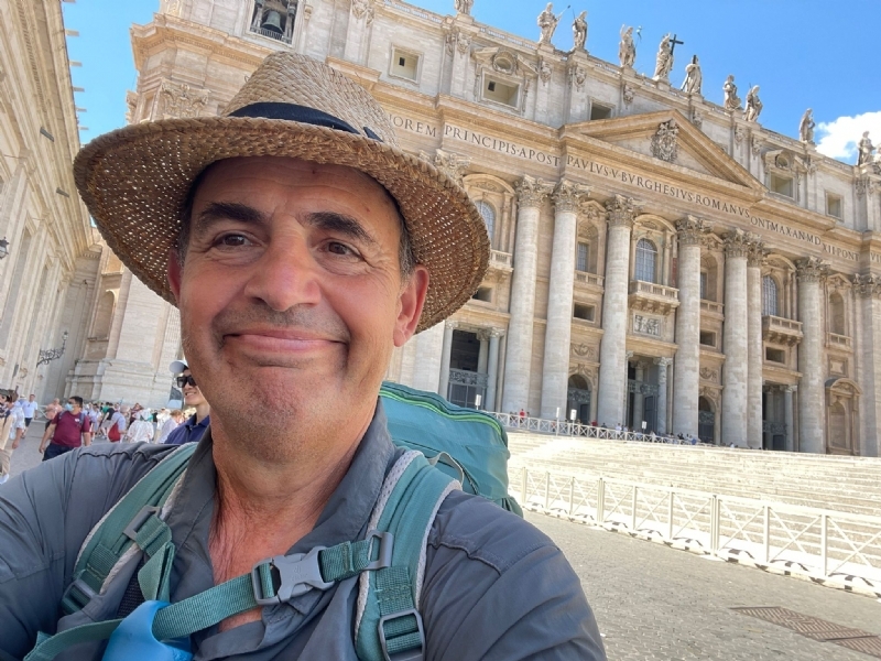 Het is leuk om daar aan te komen, maar tegelijk ook een deceptie. Ik kan me herinneren van de Camino de Santiago, dat het best emotioneel moment is als je het plein voor de kathedraal van Santiago opwandelt. In Rome is dat gevoel er niet. De Sint Pieter is mooi en indrukwekkend, maar tegelijk vooral een protserige explosie van te veel marmer en te veel geld. Marcus, my-friend-for-a-day-from-Brasil verwoorde zijn deceptie als volgt: ’Nobody knows I have been walking 1900 kilometer’. Hij was 2,5 maand geleden gestart in Canterbury. Daar zijn mijn lullige 800 kilometers weer peanuts bij. Ook al gaat het natuurlijk niet om de afstand.