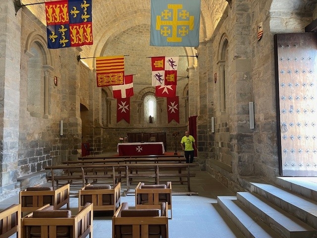 Vanmorgen om zeven afgetikt met Simon, mijn loopmaatje gedurende laatste drie dagen richting Pamplona. Viel toch nog tegen. 21 Kilometer naar Pamplona. Eigenlijk heel de tijd langs de Rio Arga. Simon is duidelijk veel beter voorbereid als dat ik dat ben. Hij weet overal precies de weg en met een heel klein beetje zoeken zijn we op het centrale plein van Pamplona terecht gekomen en een superlekkere sandwich gegeten bij Cafe Iruna. Een hotel dat bekend is door Ernest Hemingway. IK ben daarna doorgestapt en afscheid genomen van mijn loopmaatje Simon. Was supergezellig. ER was een klik en ik vond het na twee weken Frans praten wel weer eens gezellig om wat te kunnen ouwehoeren. Daarna nog een kilometer of vijf naar eerste dorp achter Pamplona: Cizur Menor. Slaap hier in een albergue, die wordt gerund door de Orde van St Malta. Denk dat het onderdeel van een nonnenklooster is.