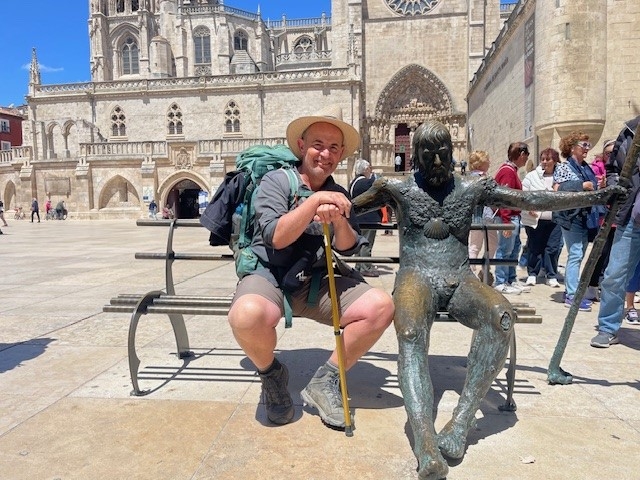 Vanmorgen laat begonnen. Dat krijg je met zo'n luxueus verblijf. In een trek doorlopen naar Burgos en daar een eerste kop koffie met een heerlijke sandwich gegeten:
