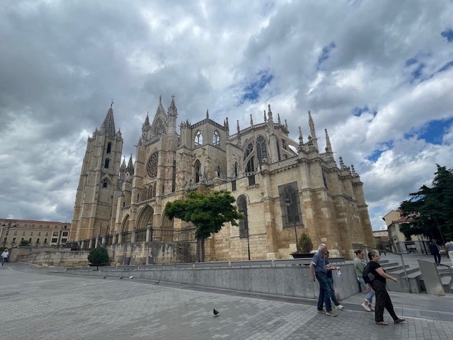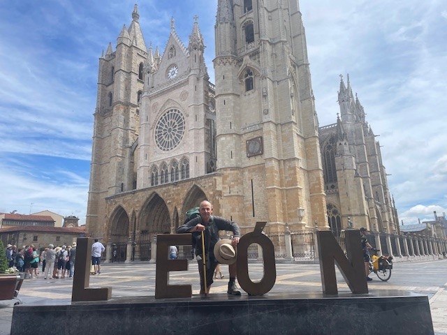 Vandaag Leon aangedaan. Leon is een supermooie stad. Dat wil zeggen het oude stadscentrum. Een nadeel is dat er aan alle kanten ook lelijke industrieparken zijn aangebouwd. Boordevol met autodealers. Je kent ze wel, net als in Nederland. In Leon kwam ik mijn Italiaanse vrienden weer tegen, Max en Davide. Samen zijn we doorgelopen naar La Valverde del Virgin. Het klinkt heel romantisch, maar is gewoon tegen de snelweg aangebouwd. Een voordeel van de albergues in dit soort kleine plaatsjes is dat je altijd een gemeenschappelijk diner hebt.
