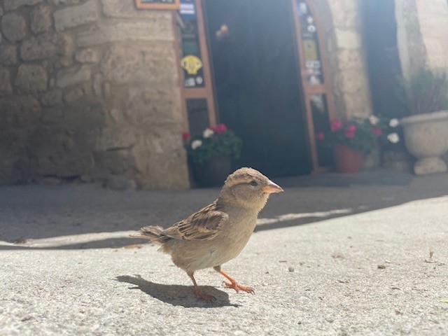 Toegegeven, mijn kopregel vandaag is niet erg bijbelvast. De originele tekst is: ‘Let op de leliën des velds’, maar er zijn hier weinig tot geen lelies, alleen wel heel veel vogeltjes. Normaal kan ik net een mus van een struisvogel onderscheiden, maar sinds mijn zus Marlies mij de vogel-app Merlin heeft aangeraden, heb ik een nieuwe hobby: vogeltjes spotten. Bijna iedere dag stop ik wel even om de app in te schakelen als ik iets hoor wat ik niet herken. Of het allemaal heel bijzonder is, kan ik niet zeggen. Dat maakt ook niet uit. Het is een leuke manier om de tijd te doden. Ik moet wel zeggen dat de soortenrijkdom voor de Meseta groter was. Ik denk omdat er daar meer ruig opgeschoten struikgewas langs de route is te vinden. De kampioen in dit gebied is natuurlijk de nachtegaal, maar putters, groenlingen, zwartkoppen en eigenlijk te veel om op te noemen. Opvallend genoeg zijn de kool- en pimpelmees dan weer niet aanwezig.