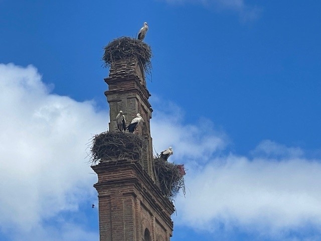 Voor de meest dominante vogel van de camino heb je geen app nodig. Bijna iedere kerktoren langs de camino zit boordevol met ooievaars. Op sommige kerktorens kun je, verspreid over verschillende nesten, soms wel twintig vogels tellen.