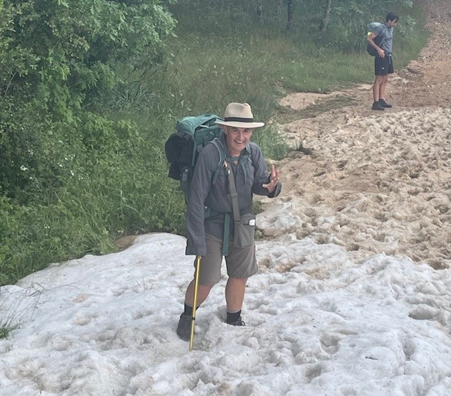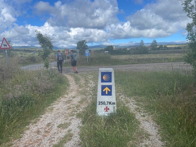 Gisteren regende het een groot deel van de dag en de vooruitzichten gaven aan dat we het tot laat in de middag droog zouden houden. Maar net als in Nederland kloppen die dingen niet altijd en na een vrolijk en zelfs zonnig begin van de dag kregen we in anderhalf tot twee uur precies mee hoe wisselvallig het weer in de bergen kan zijn. Eerst begon het zachtjes te regenen en dat werd al gauw stortregen en hagel. Best wel bijzonder zo in juni, maar Foncebadon, het dorpje waar ik nu geland ben, ligt niet voor niets op 1400 meter. Volgens mij is dat hoger dan onze doortocht door de Pyreneeën.